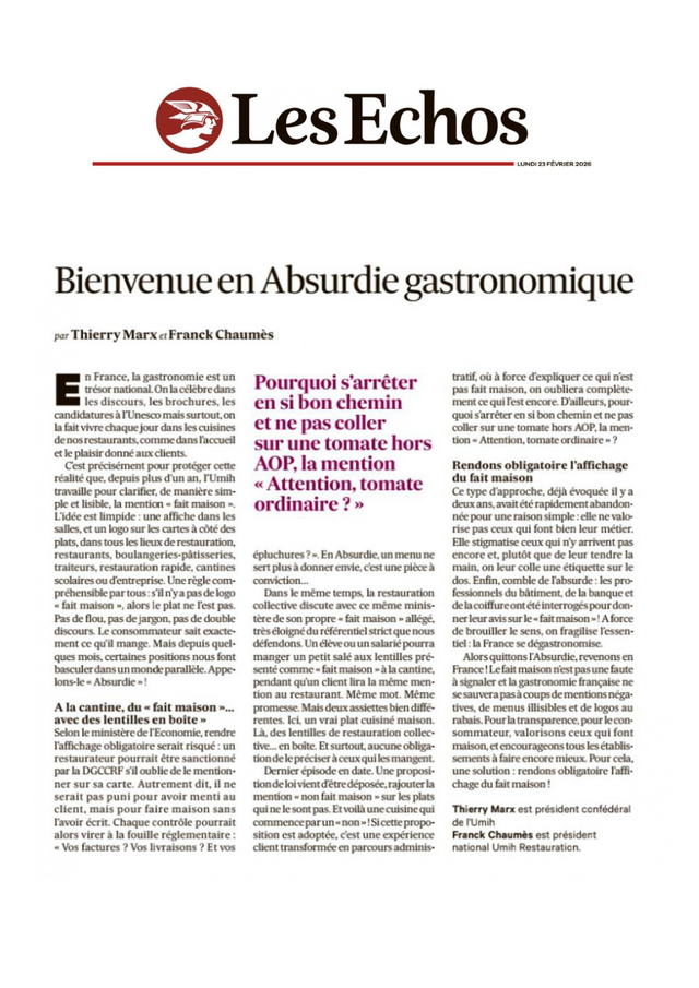 « Bienvenue en Absurdie gastronomique », tribune publiée dans Les Echos