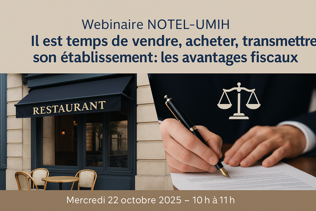 Webinaire NOTEL-UMIH : Il est temps de vendre, acheter, transmettre son établissement : les avantages fiscaux